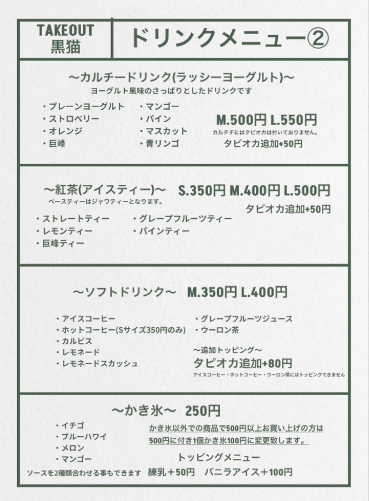 | 当店ではインスタのフォロワー様のみポイントカードを無料でお渡ししております。 フォロワー様以外ではポイントカードは1枚100円となります。 下から黒猫インスタに飛べますので、是非フォローをお願いいたします。 |
